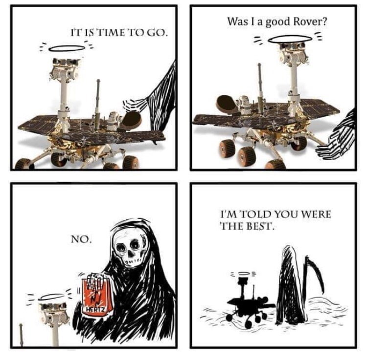Mars Rover Meme : My Battery Is Low And It S Getting Very Dark Why We Re Crying Over Losing Opportunity : Within the first month of its landing, opportunity found mineral spheres dubbed blueberries5 that alluded to water possibly existing on the planet.